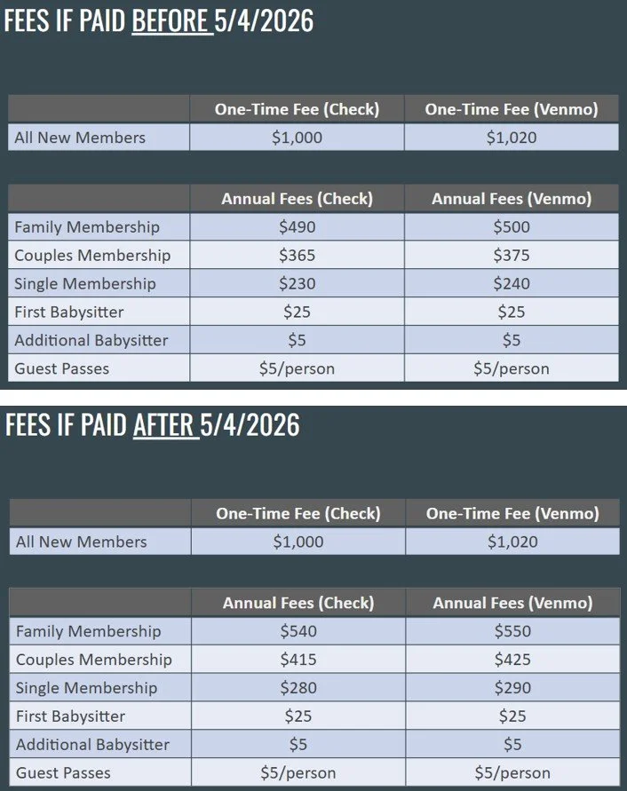 However, in order to regain access to the pool each Summer you must pay your Annual Dues. The Annual Dues go directly towards pool operations. (i.e. Taxes, Opening, and Closing Procedures, Utilities, Phone and Internet, Pool Chemical Purchases, Staff Wages, and Any Required Maintenance/Repairs as deemed necessary by the Pool Board)